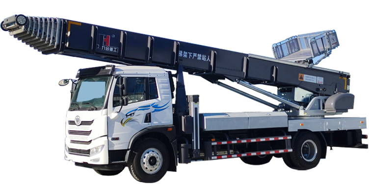 36米云梯車可傳送 400kg 重的貨物,用于高度小于36 米的高空裝卸作業(yè)。該云梯車主要由車架總成、云梯總成、小車總成、轉(zhuǎn)臺(tái)總成、卷?yè)P(yáng)機(jī)總成、液壓系統(tǒng)總成、電氣系統(tǒng)總成等組成。傳送貨物時(shí),4 個(gè)液壓支撐伸出,加強(qiáng)了整機(jī)的穩(wěn)定性。 該云梯車,采用一汽解放底盤,整車重量控制在4.5噸以內(nèi),掛藍(lán)牌,C1駕照就可駕駛,免購(gòu)置稅,不需要操作證,非營(yíng)運(yùn)車輛,使用期限30 年。